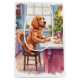 This playful Christmas artwork features a Cocker Spaniel baking gingerbread cookies in a festive holiday kitchen. Perfect for seasonal décor, dog-lover gifts, cookie-baking fans, and anyone who loves charming Christmas whimsy.