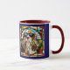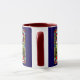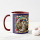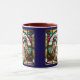 A cute funny dog coffee cup featuring a Cocker Spaniel wearing sunglasses portrayed in stained glass.