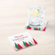 Celebrate the season with this cheerful holiday coasters featuring a trio of cute Christmas trees in red, green, and pink, dusted with soft snowflakes for a whimsical winter touch. The modern design adds a playful twist to tradition.