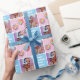 Custom photo gift wrap is a fun way to creatively display your pictures! This personalized set includes three sheets, perfect for holidays, birthdays, Christmas, and other special occasions. The pattern showcases three of your favorite photos in a stylish grid with rounded squares, and simple typography. You can customize the text with your own greeting, phrase or slang. This modern retro style is perfect for photos of kids, teenagers, friends, family and pets, or include decorative images to enhance your visual theme. A seamless pattern wrapping paper, printed on premium quality paper with your choice of a matte or glossy finish. Different length rolls are available from 6 feet - 60 feet. Colors: blue and white — or change the color with the design tool.