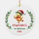 Celebrate a precious milestone with this Personalized Baby's First Christmas Ceramic Ornament, featuring a happy baby duck wearing a festive Santa hat, surrounded by delicate green and red winter foliage . This charming design is printed on both sides for a beautifully finished and heartwarming keepsake. Customize the baby's name and year to create a meaningful holiday decoration that families will treasure for years to come. If you wish, the text can be further personalized by changing the colors, fonts and 1st Christmas message. A perfect Christmas gift for newborns, infants, new parents and grandparents. This cute and modern ornament blends timeless holiday colors with an adorable illustrated baby animal, making it a lovely addition to any Christmas tree. A perfect way to remember your little one's very first Christmas season.