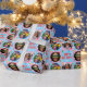 Get into the festive spirit with this cute personalized wrapping paper! A playful design featuring three of your favorite photos. The background is filled with stars, snowflakes, hearts, and Christmas trees, all adding to the cheerful vibe. The template incorporates trendy typography with the phrase “Happy Holidays,” along with your name, but all of the text can be customized. A fun, modern retro style that's perfect for Gen Z, teens, and young adults. Printed colors: blue, pink, green, red, yellow and white — or customize the colors with the design tool. Available with a matte or glossy finish.