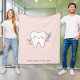 This light pink fleece blanket features a cute botanical tooth illustration and is personalized with your dental office name in a clean, sans serif font.