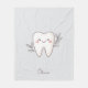 This light grey fleece blanket features a cute botanical tooth illustration and is personalized with a name in a script font.