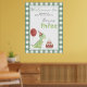 Watercolor kids birthday party. Watercolor Dino in birthday hat, cake with candles, red balloon. Green cage background.
