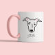 Custom pet portrait illustration Italian Greyhound dog mug ready for you to add name. Great gift for Dog Mom and any pet parent on Mother's or Father's Day or Valentine's Day! Feel free to change the ear color or background color to any other under "personalize this design" and go to "edit using design tool". Other breeds available in collection. Choose from a variety of interior mug colors.