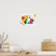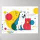 Cute dog sits in colorful art space poster