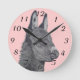 A cute animal is is so hard to resist and this little donkey is so very cute, the original donkey picture is a graphencil pencil drawing, I created the original artwork for this drawing in pencil using a photograph that I took of a very sweet donkey when I was at the forest festival in Epping ist, which is just outside east london in England, this little fellow was part of the donkey ride show and i fell in love withim. He's drawn in the realist style of art that I owork in. The black and white cute donkey picture on the clock face looks great on this original clock and the pink background compliments the monochrome shades of the drawing I think this cute donkey art clock makes a great gift a great gift for everyone a soft spot for donkey's, or perhaps it a special treat yourat Self.