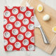 This kitchen towel features a cute line drawing doodle art Christmas Santa with a red hat within a white circle on a red background. Featuring original art from Dogwood & Thistle.