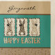 This cute Easter egg hunting bag, or tote bag if you prefer, features cute coquette bunnies with animal print and checkerboard patterns, and cute hand-drawn brown bows in shades of brown and tan. Happy Easter is printed in playful type and coordinating colors underneath. The bunnies are hopping against a color block of teal, with a stylish faux gold glitter print below. Your monogram name appears in brown script at the top on a coordinating tannish taupe color. Make sure to type your name in the Personalize box. The tote is shown with a green strap but you can choose a different color or plain.