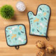 Cute Easter Bunny Pattern Kawaii Rabbits Eggs Ofenhandschuh & Topflappen-Set