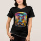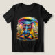 This adorable t-shirt features a cute elephant sitting in the rain, holding a warm cup of coffee under a colorful rainbow umbrella.