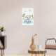 This cheerful baby elephant splashes playfully in a sparkling water puddle on a sunny day. With big, bright blue eyes and a happy smile, this adorable little elephant enjoys the cool water while surrounded by gentle green trees and fluffy white clouds. This sweet and charming illustration brings warmth and happiness to any child's room or nursery.
