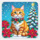 Cute Festive Orange Cat Christmas Quadratischer Aufkleber