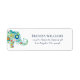 Cute retro floral elephant over a white background. Dark blue customizable typography.
