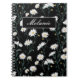 Embrace classic elegance with this charming daisy pattern spiral notebook, a perfect companion for writers, students, and creative souls. Set against a sleek, midnight-black background, the design features a hand-drawn field of crisp white daisies with golden-yellow centers, creating a timeless botanical aesthetic that never goes out of style. You can easily personalize with your name or initials.