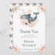Beautiful baby shower thank you card features a whale with coral pink floral arrangements. Perfect for a baby shower. The words can be changed to suit your own details or requirements