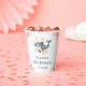 Beautiful birthday party paper cup features a whale with coral pink floral arrangements. Perfect for a birthday party. The words can be changed to suit your own details or requirements