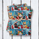 Adorable cat themed Christmas gift wrap with impasto and paper quilling style folk art cats and poinsettias. Colors used are red, teal, green and blue.