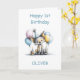 Make his first birthday even more memorable with this cute fox birthday card. The lovable fox is wearing a party hat and is sitting next to a birthday cupcake with a burning candle while surrounded by balloons.