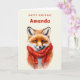 Cute Fox in a Red Scarf Autumn Image Birthday Karte