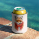 A can cooler with an adorable illustration featuring a cute little red fox face