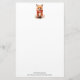 Stationery with an illustration of a reddish orange fox pup. A subtle smile on his face. Wearing a nice red scarf for warmth.