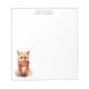 Notepad with an illustration of a reddish orange fox pup. A subtle smile on his face. Wearing a nice red scarf for warmth.