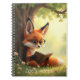 Cute fox wearing glasses lies comfortably beneath a tree in the forest, reading a book. Cute, custom notebook.