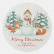 Cute Foxes and Snowman Merry Christmas Runder Aufkleber
