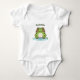 Ein Baby Bodysuit mit einer Abbildung eines niedlichen Frosches auf seinem Teich und anpassbarem Text oben! Eine nette Geschenkidee für eine Babydusche oder für Eltern, die ein Kind erwarten. Es ist sowohl für Jungen als auch für Mädchen geeignet!