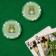 Ein grüner Poker-Chip mit einer Abbildung eines niedlichen Frosches auf seinem Teich und anpassbarem Text oben! Holen Sie es für Ihre lustigen Zuhause-Turniere! Diese Token können auch als Getränkekarten, Golfmarkierungen, Bachelor-Partys oder als Geschenke an Spieler verwendet werden!