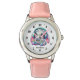 Kinderuhr aus Edelstahl mit rosa Lederarmband