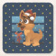 Paper Coasters with illustration of cute German Shepherd with a present on a starry night dark blue background, illustrated by Radka2D