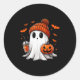 Cute Ghost Drinking Ice Coffee Halloween Pumpkin M Runder Aufkleber