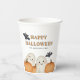 Cute ghost, pumpkin personalized Halloween party paper cups. Easy to change the text. Cute watercolor design for a kid's party. Happy Halloween text is black and orange. Design is front and back.