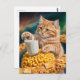 Cute Ginger Cat With Milk in Space Postkarte