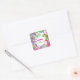 Cute Girl Dinosaur 4th Birthday Thank You Quadratischer Aufkleber