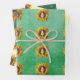 This set of wrapping paper sheets have a big festive yellow sunflower with the cute face of a smiling girl in the centers on shades of greens and yellows.