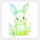 Cute Green Bunny Party Theme Pastel Floral Quadratischer Aufkleber
