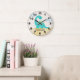 Add a prehistoric charm to your child’s room with this adorable personalized wall clock! Featuring a friendly light green dinosaur standing on a soft brown hill, this clock brings fun and imagination to any space. Customize it with your child's name for a unique and special touch. Perfect for dinosaur lovers, birthdays, baby showers, or nursery decor!