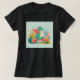Cute Green Dragon sitting on bench in a garden for T-Shirt