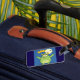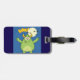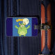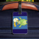 spot your bags easily with this cute green monster luggage tag featuring a vibrant cartoon illustration of a friendly horned creature. the bright lime colors and full moon backdrop make your suitcase stand out at the airport or on a school trip. perfect for kids and adults alike this spooky mascot travel accessory adds a playful touch to your gear while helping you identify your belongings. travel in style with this cheerful monster theme that is both fun and functional.