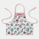 Cute personalized apron featuring a hand drawn pattern of cupcakes with frosting and decorated with sprinkles, berries and fruit in lovely pastel colors. Add your name or your child's name against pink, surrounded by cute stars.