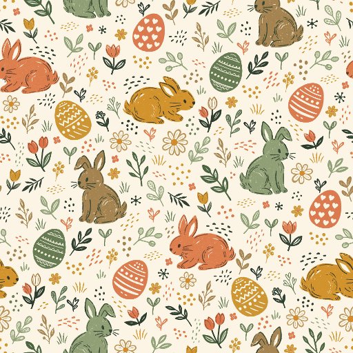Hopping into spring! A sweet & decorative spring flower pattern, handdrawn and then digitally illustrated. --- Celebrate the magic of the season with this sweet Spring Bunnies and Eggs Pattern! This hand-illustrated design features adorable bunnies nestled among decorated Easter eggs and delicate floral accents. With its soft pastel palette and whimsical style, it perfectly captures the joy of springtime.