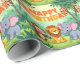 Cute Happy Birthday safari theme with monkeys, lion and elephant in the jungle.