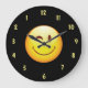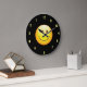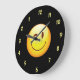 Cute reverse dial wall clock with a happy smiley winking face in the center on the black background. There is no text on this product but can be added if desired, if you would like help to customize your product please contact me through my store and i will be very happy to you.
