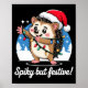 Cute Hedgehog With Santa Hat Christmas Lights Wint Poster