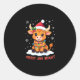 Cute Highland Baby Cow Christmas Lights Merry & Br Runder Aufkleber