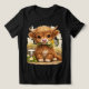 This adorable Highland cow t-shirt features a cute fluffy cow holding a small bouquet of flowers in a soft watercolor style.